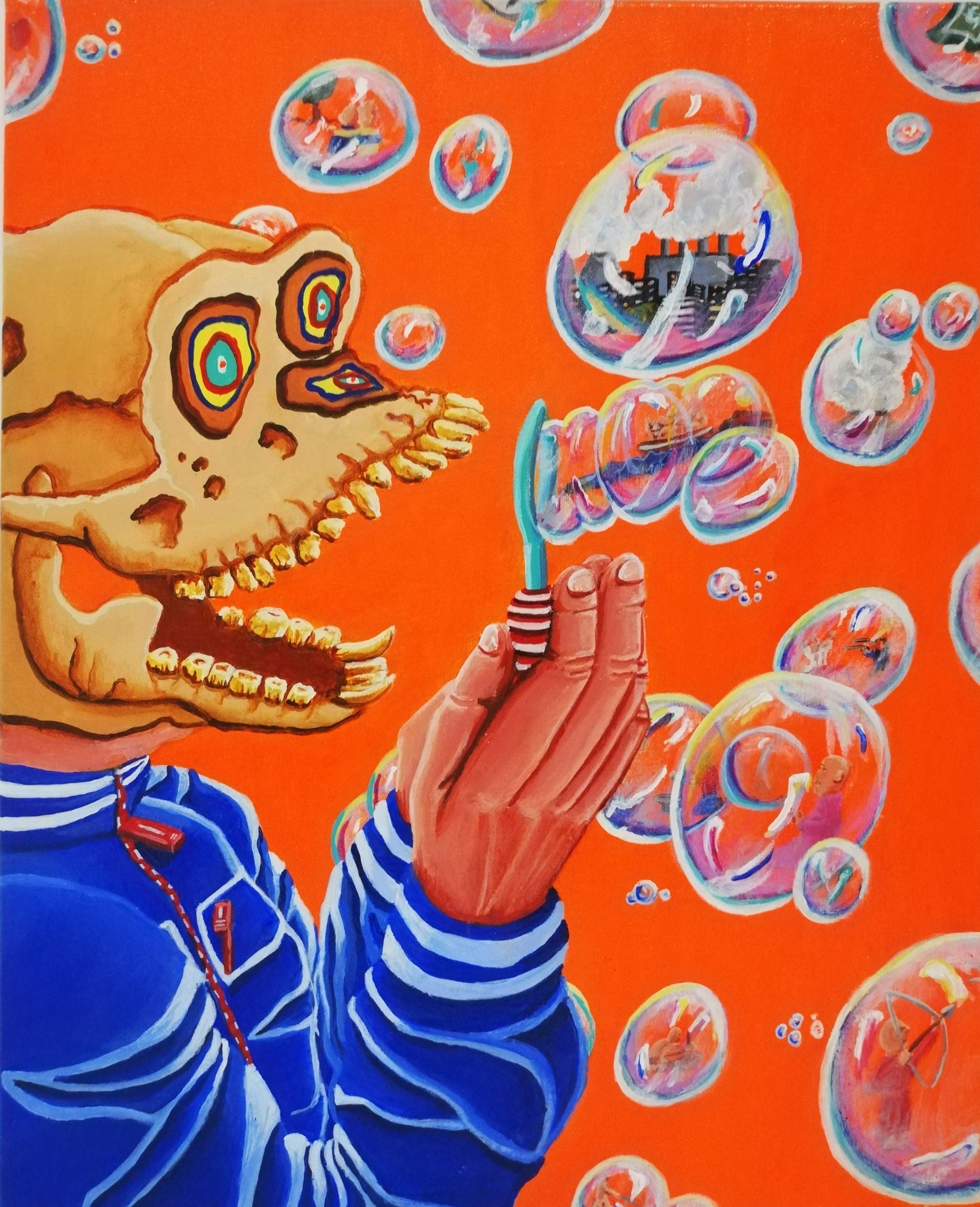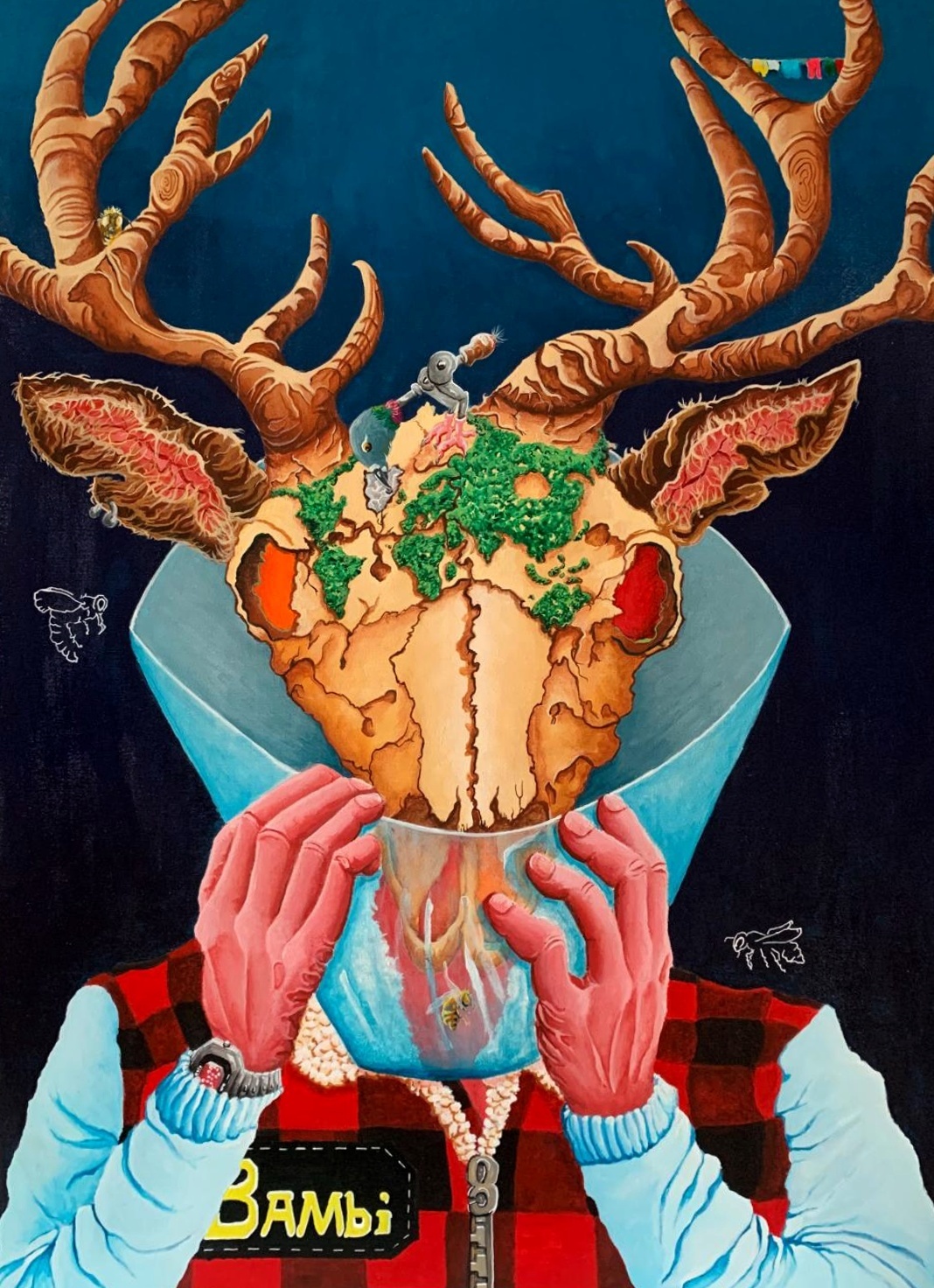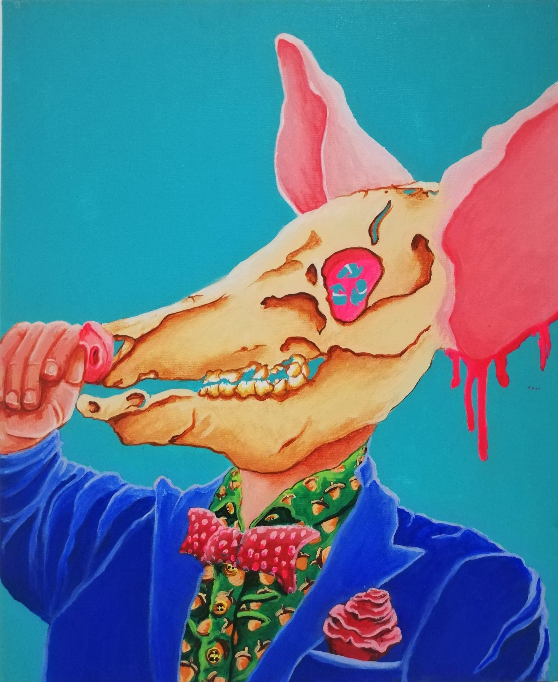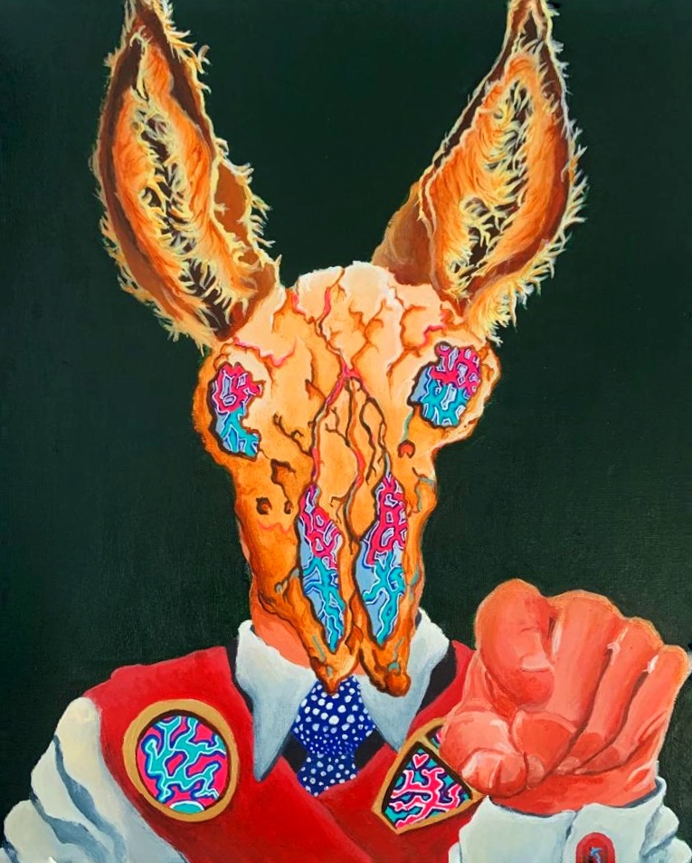 El artista utiliza cráneos de animales, evocando un momento del pasado del protagonista, en el que más exprime su esencia. Tal como es, tal como era, tal como somos.