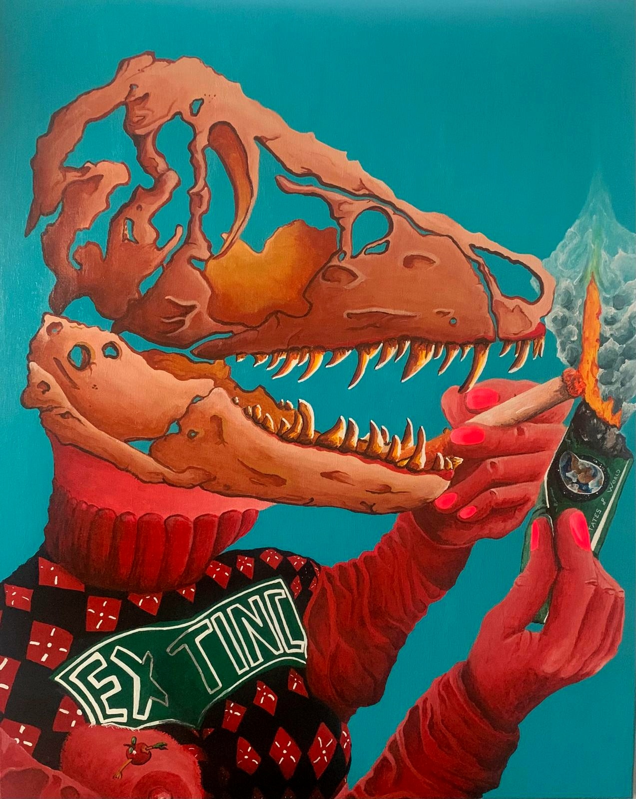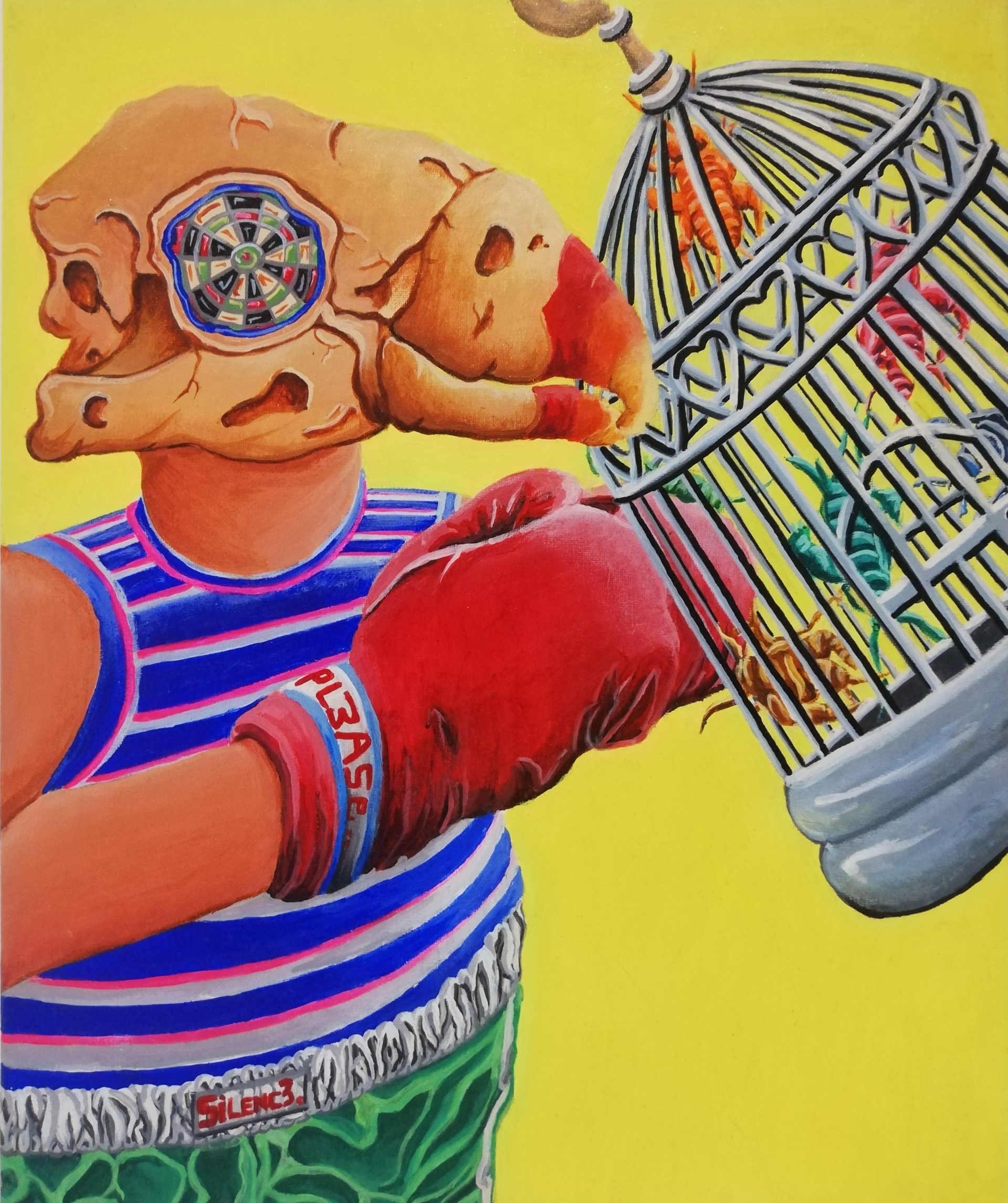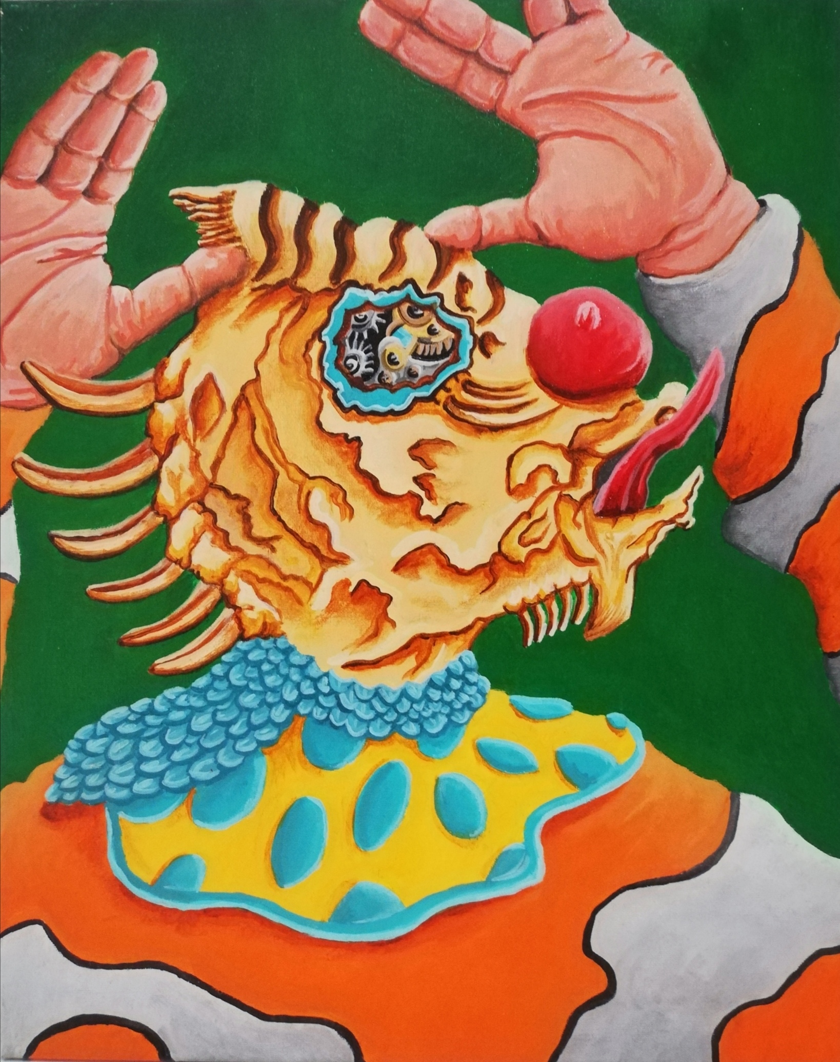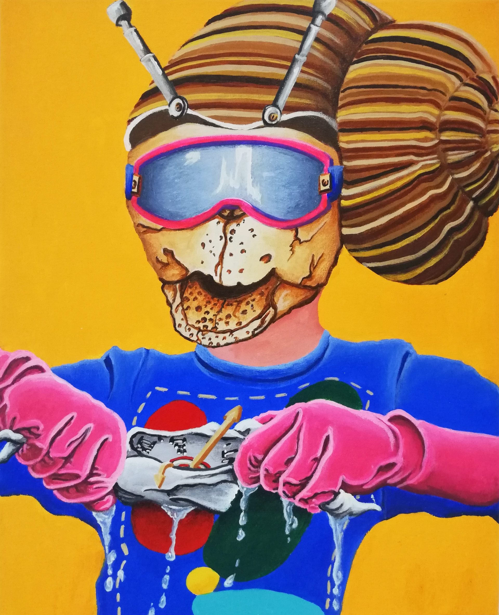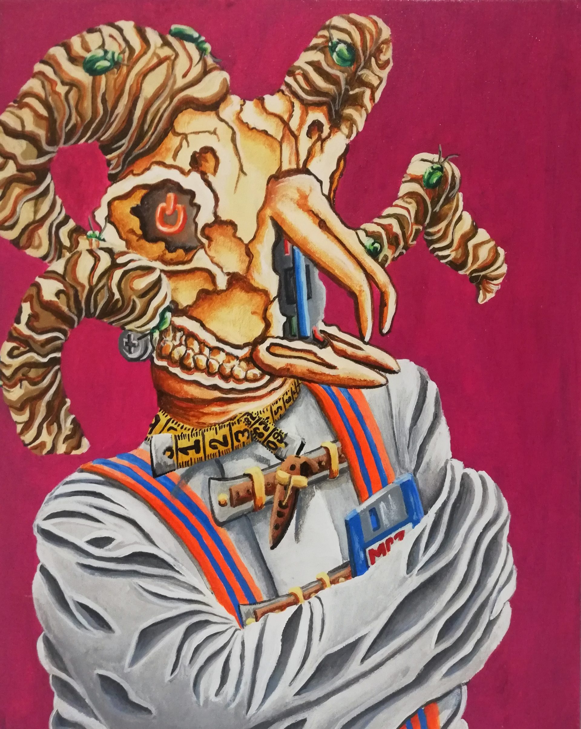 Esta serie trato de explicarla, empleando uno de los recursos que más me caracterizan: “La Teriantropía”. Mezcla animal-humano de formas, que me sirven para expresar una crítica hacia el “Retratado o Retratada” y su anhelo de buscar la máxima perfección personal.